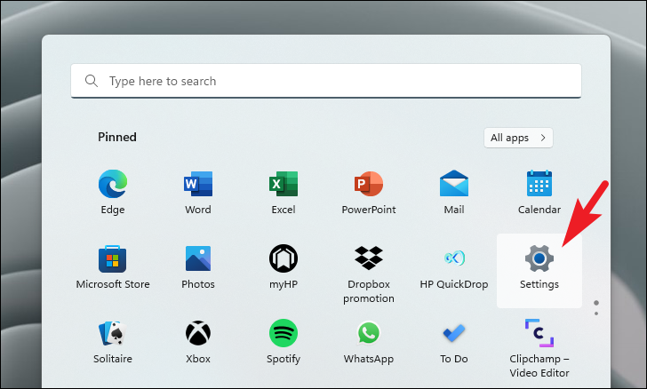 Step 1: Click on the Start button and select the Settings app from the 'Pinned apps' section. You can also search for Settings in the Start Menu search bar.