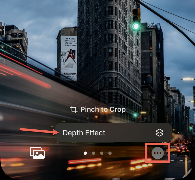 You can also disable the depth effect on any wallpaper that is supporting it. Tap the three-dot menu in the bottom-right corner. Then, tap ‘Depth Effect’ to disable it so there’s no checkmark next to it.