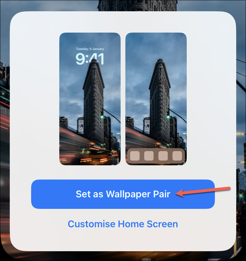 Then, either tap ‘Set as Wallpaper Pair’ to set it for both lock and home screens or tap ‘Customise Home screen’ to make changes to the home screen.