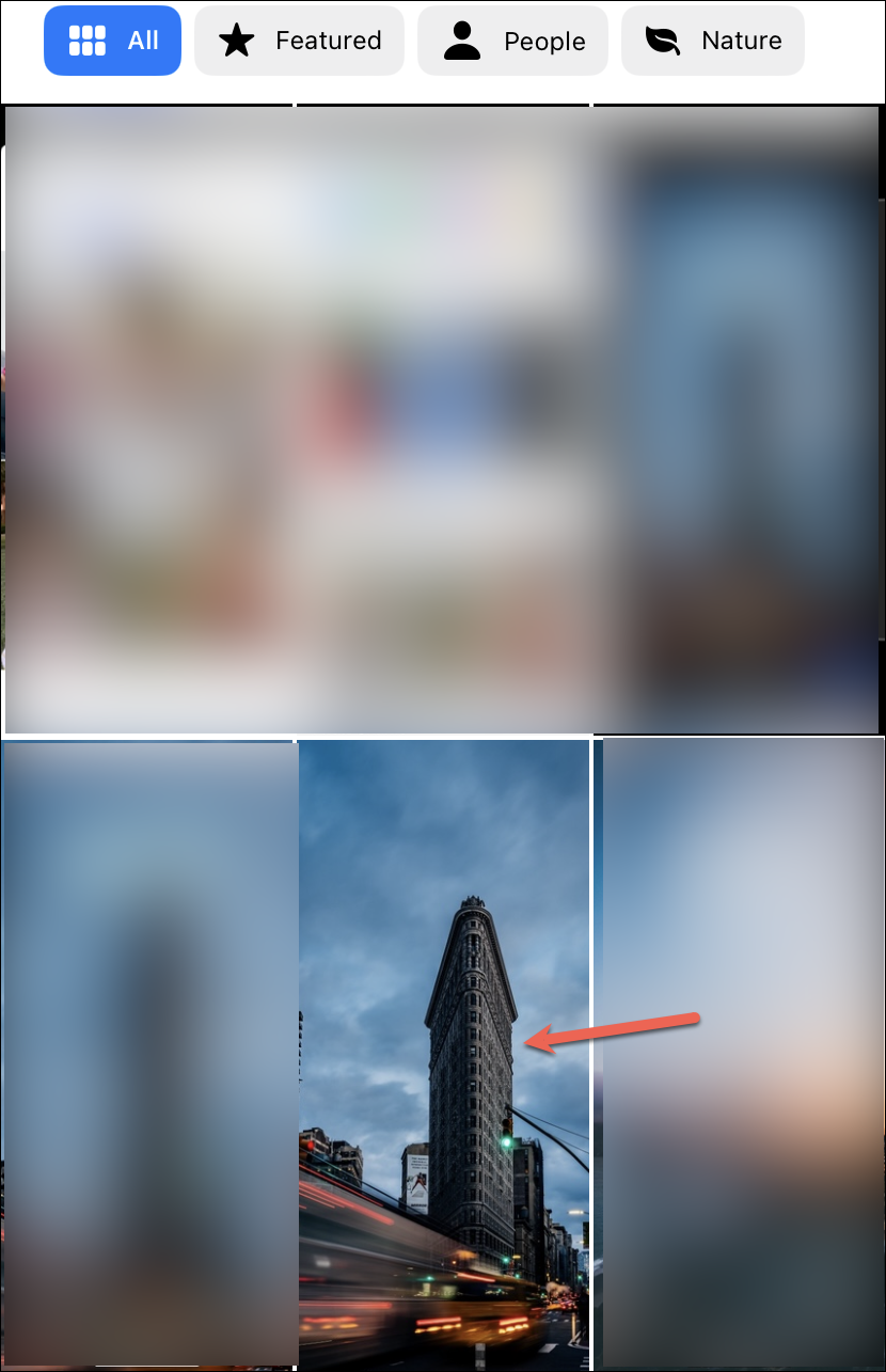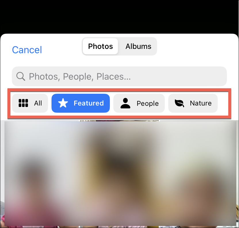Then, you can either select a photo from the ‘Featured’ category that iOS intelligently suggests to complement your lock screen settings. Or you can switch to other categories like ‘All’, ‘People’, or ‘Nature’ to choose the wallpaper accordingly.