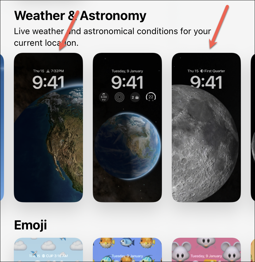 To use an astronomy wallpaper, go to the ‘Weather & Astronomy’ section and select either of the wallpapers of the Earth and the Moon where they are in front of the clock. Similarly, to use any other wallpapers from the gallery that support this effect, go to their respective categories.