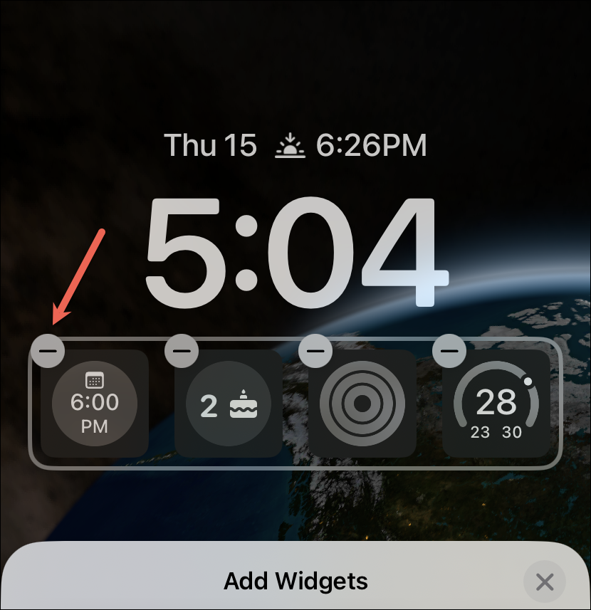If the astronomy lock screen has widgets on it, tap the rectangle to edit them. Then, tap the ‘–’ on each widget to remove them.