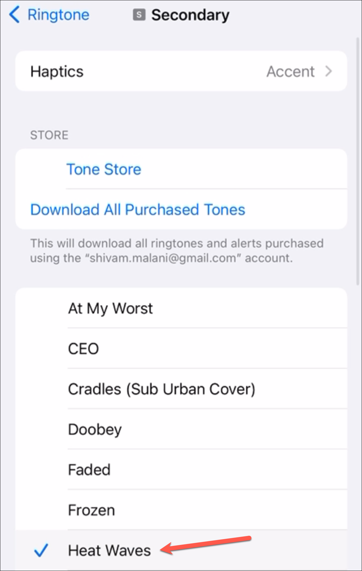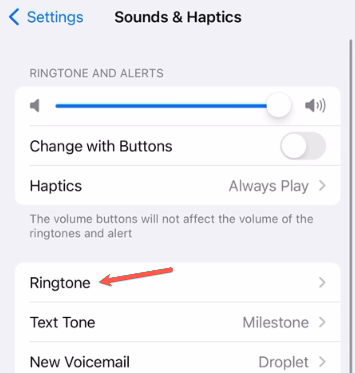 Next, tap the option for 'Ringtone'.