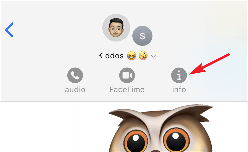 A few options will expand underneath the group name. Tap on the ‘i’ (info) icon.