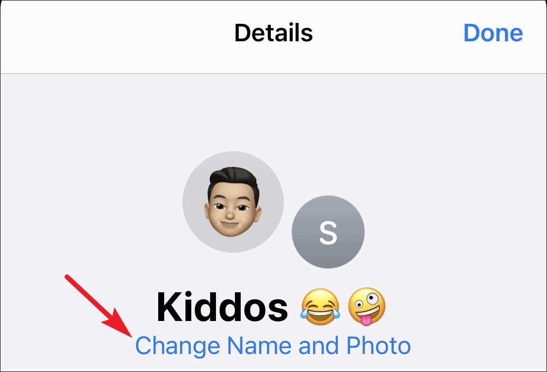 You’ll see the ‘Change Name and Photo’ option on the Details screen. Tap on it.