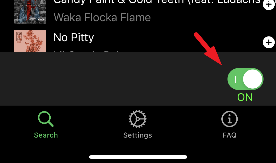 Then, tap on the search bar and enter the name of your desired song, and tap on the ‘Search’ button present at the bottom right corner of the on-screen keyboard. Now, from the search results, locate the song you wish to set as your ringtone. You can also preview a song by tapping on its name. To set the ringtone as your ringtone click on the ‘+’ icon present on the far right edge of the tile.