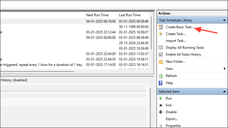 - When the Task Scheduler opens, click on 'Create basic task' on the right.