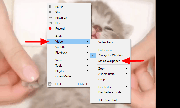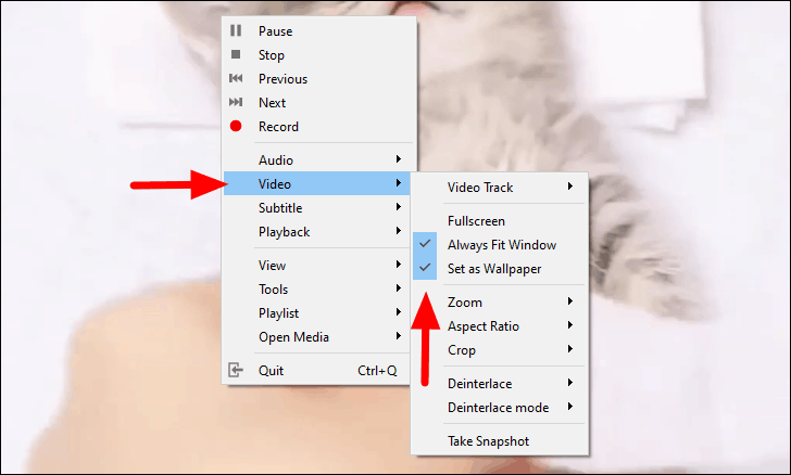 Now, right-click anywhere on the video and a menu will appear. Hover the cursor over ‘Video’ and then click on ‘Set as Wallpaper’ in the list of options that pop up.