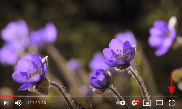 To set a YouTube video as wallpaper, open the video, and then enable the full-screen mode by clicking on the ‘Full Screen’ icon at the bottom-right corner of the video or pressing the F key.
