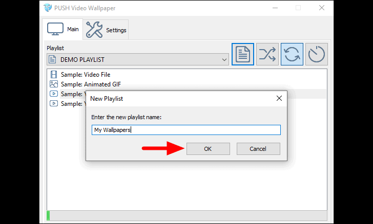 Next, enter a name for the playlist in the provided section and click on ‘OK’.