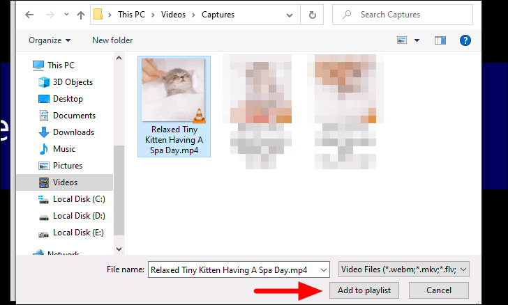 Now, browse and select the video that you want to add and click on the ‘Add to playlist’ option.