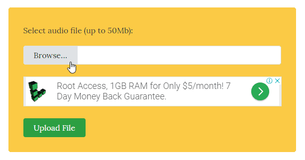 - Click on the Browse button » select the .mp3 file you want to set as ringtone » and then hit the Upload File button.