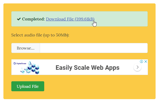 └ Note: Make sure the .mp3 file is not more than 40 seconds in duration or else iTunes won’t let you transfer the file as a ringtone on your iPhone. - After uploading the file, give the m4ronline tool a few seconds to convert your mp3 file into m4r. Once it is done, you’ll get a Download file link on the same page (see image below), click on that link to download the converted .m4r file.