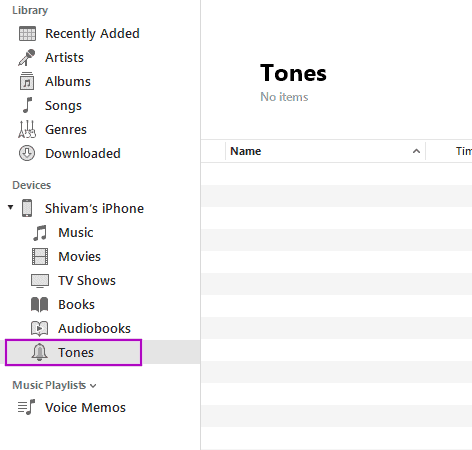 - Spot your iPhone under Devices section on iTunes and click on the Tones.
