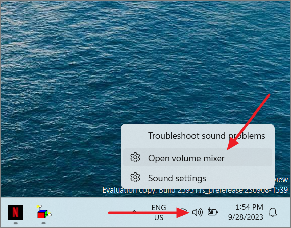 Step 1: Right-click the Volume icon in the taskbar and select Open Volume mixer. Alternatively, navigate to Settings > System > Sound > Volume mixer.