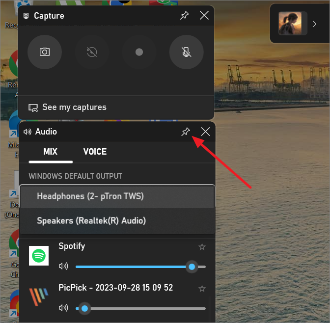Step 5: To have quick access to the volume controls, you can pin the Audio widget to your screen. Click the pin icon on the widget to keep it visible even when you close the Game Bar.