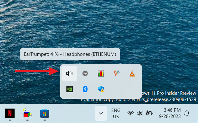 Once installed, EarTrumpet can be accessed from the System tray. Clicking on its icon brings up individual volume sliders for all your running applications, making it even more convenient to adjust volumes without opening the built-in Volume Mixer.
