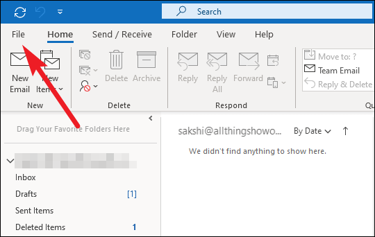 To set up automatic replies from the Outlook desktop app, open the app and click on the ‘File’ option on the Menu Bar.