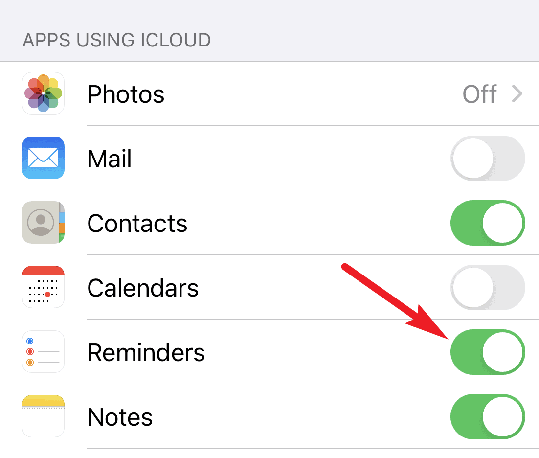 In the iCloud settings, verify that the toggle for ‘Reminders’ is on.