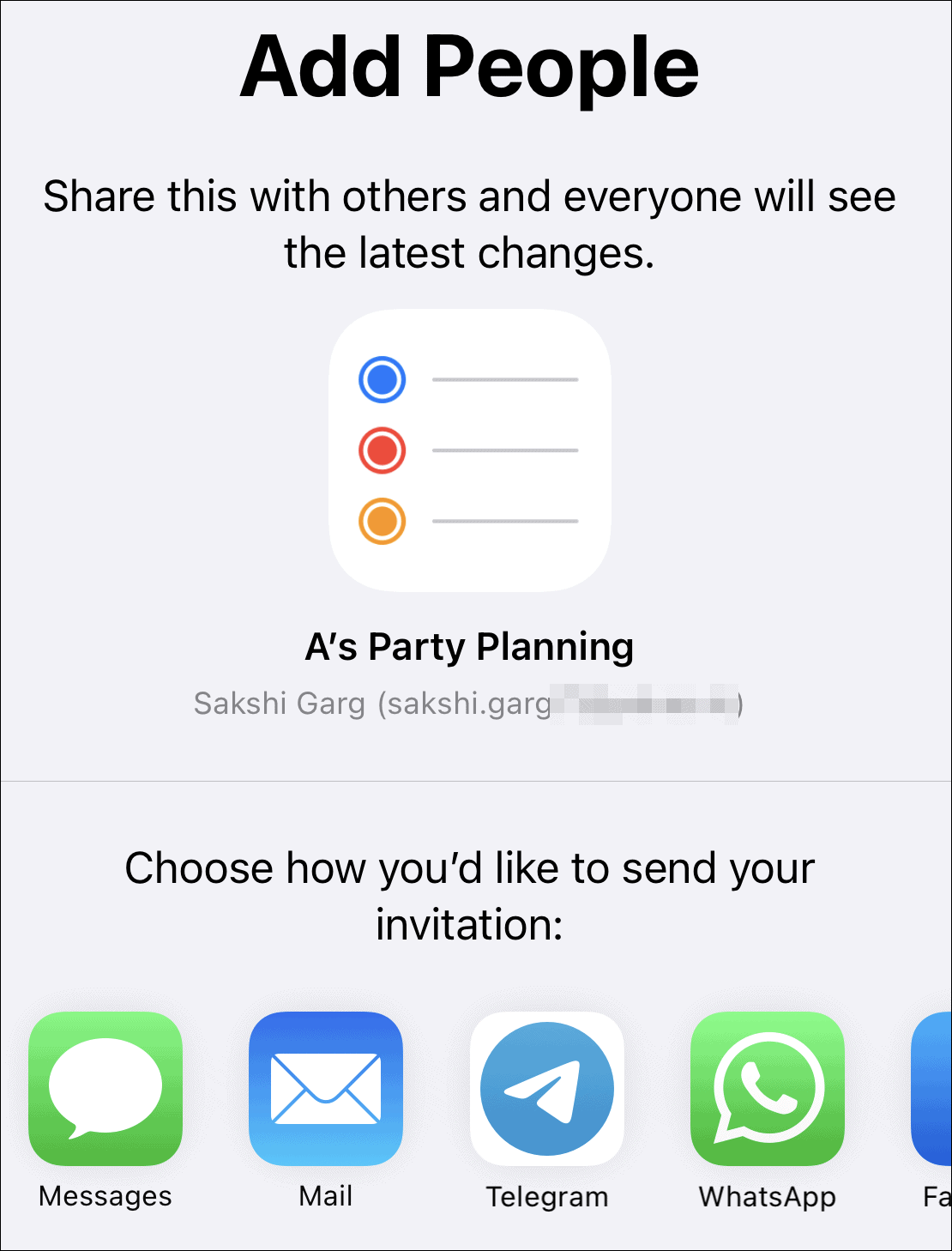 Choose how you’d like to send the invitation for them to join the list. You can choose any medium to send the link. The person would have to accept your invitation. Also, the people you share the list with should be iCloud users.