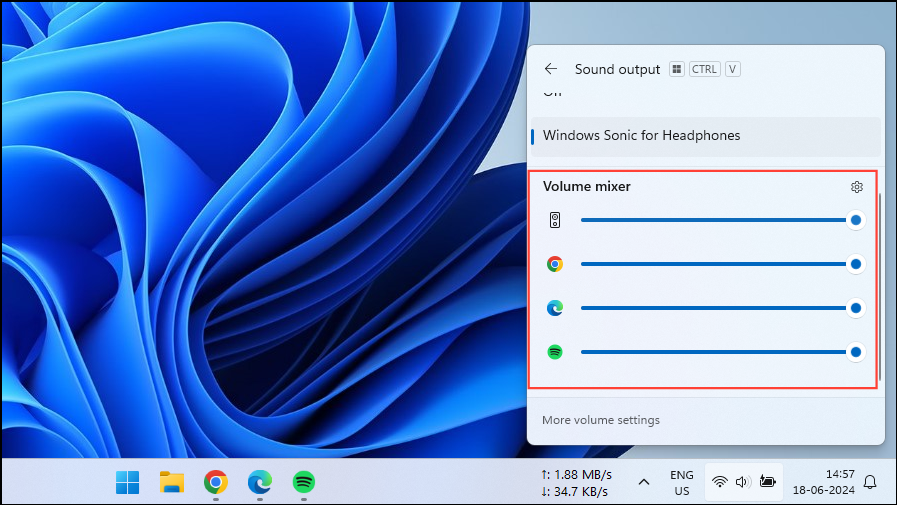 Step 3: Scroll down to locate the Volume Mixer section. Here, you can adjust the volume for each active application by moving the corresponding sliders.