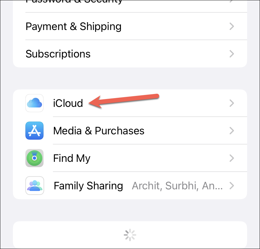 Then, tap the option for ‘iCloud’.