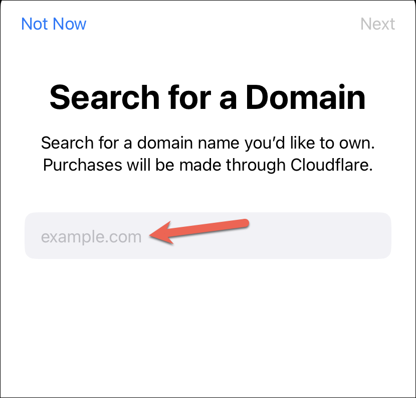The option to search for a domain you want to buy will appear. Tap the search field and type the domain name you want to buy.