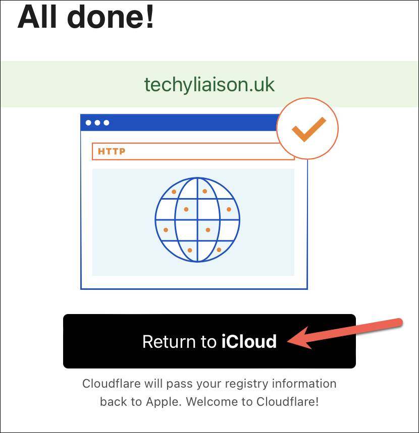 Once you complete the payment, tap ‘Return to iCloud’, and your domain will be all set up to use with iCloud Mail.