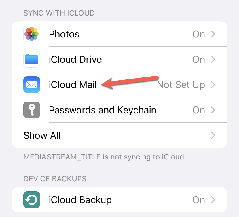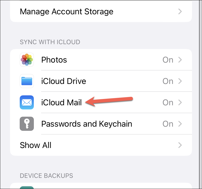 Then, tap the option for ‘iCloud Mail’.