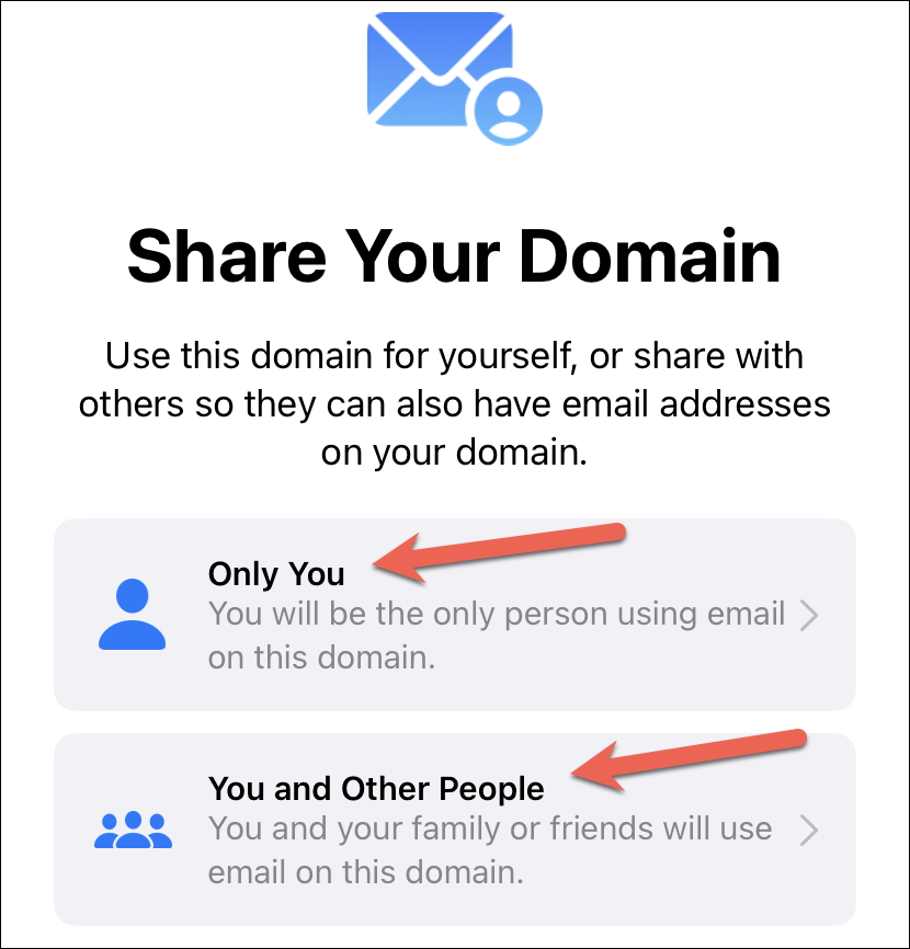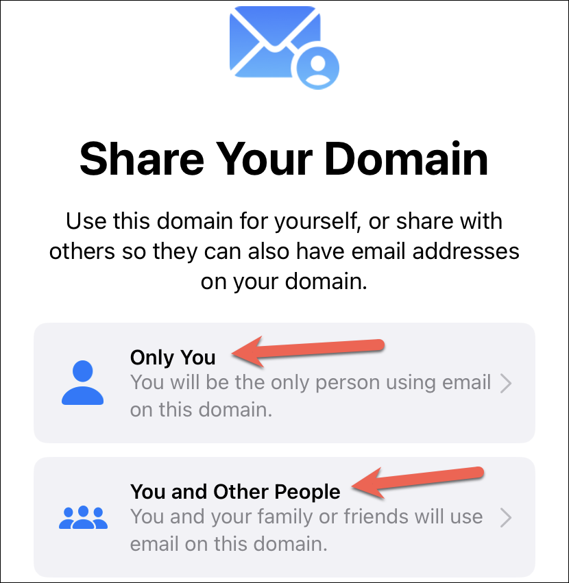 Now, on the next screen, select who will be using your domain. If you want to share the domain with friends and family, then tap the option for ‘You and Other People’. Otherwise, tap the option for ‘Only You’.