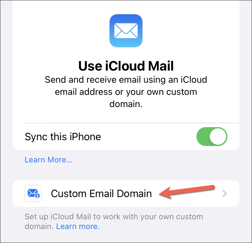 Now, tap the option for ‘Custom Email Domain’.