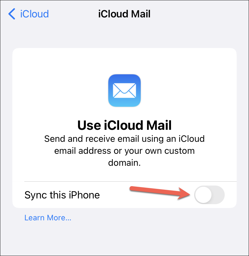 Turn on the toggle for ‘iCloud Mail’ or ‘Sync this iPhone’ depending on the iOS version you’re on.