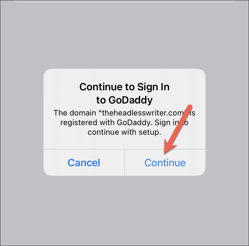 A prompt will appear on the screen. You’ll be asked to sign in with your domain provider from where you bought the domain; tap on ‘Continue’ and sign in to your account on the domain provider’s website.
