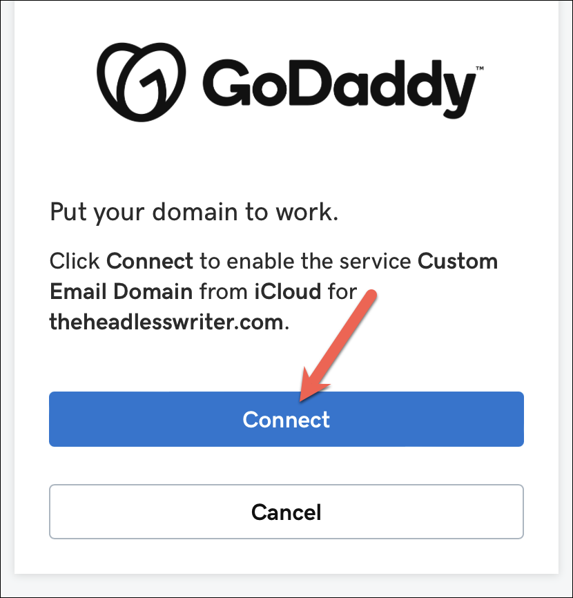 Tap the option for ‘Connect’ on your domain provider’s website to connect your domain to iCloud Mail. The options might be different for you depending on the interface provided by your domain provider, but the principle will be the same. You’ll need to connect your domain to iCloud Mail.