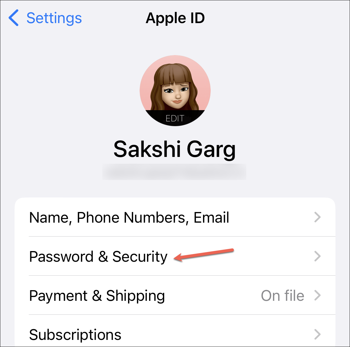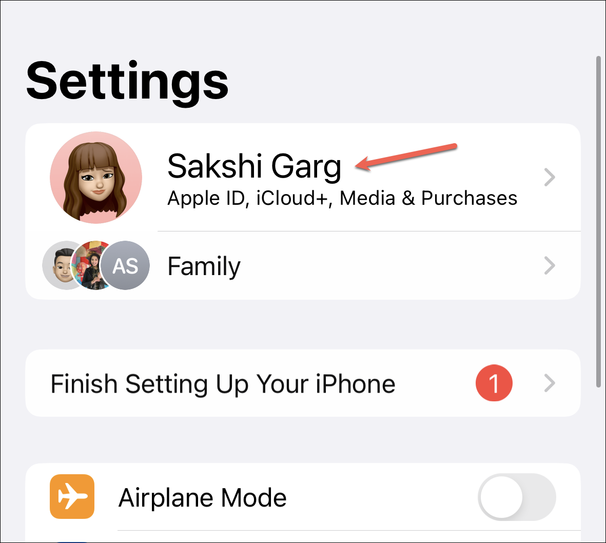 Open the Settings app on your iPhone and tap your name at the top.