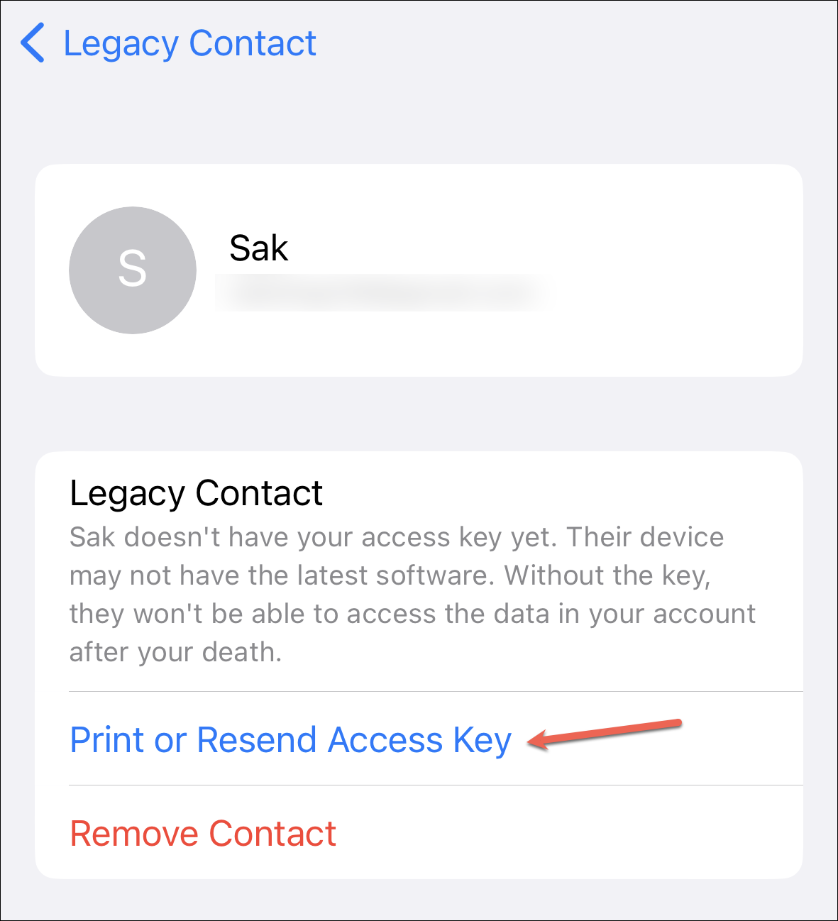 Now, the access key is the most important part of the entire process. And, thus, making sure that your legacy contact has the access key is just as vital.