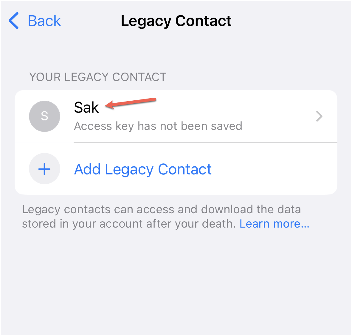 You can add more legacy contacts in a similar manner.
