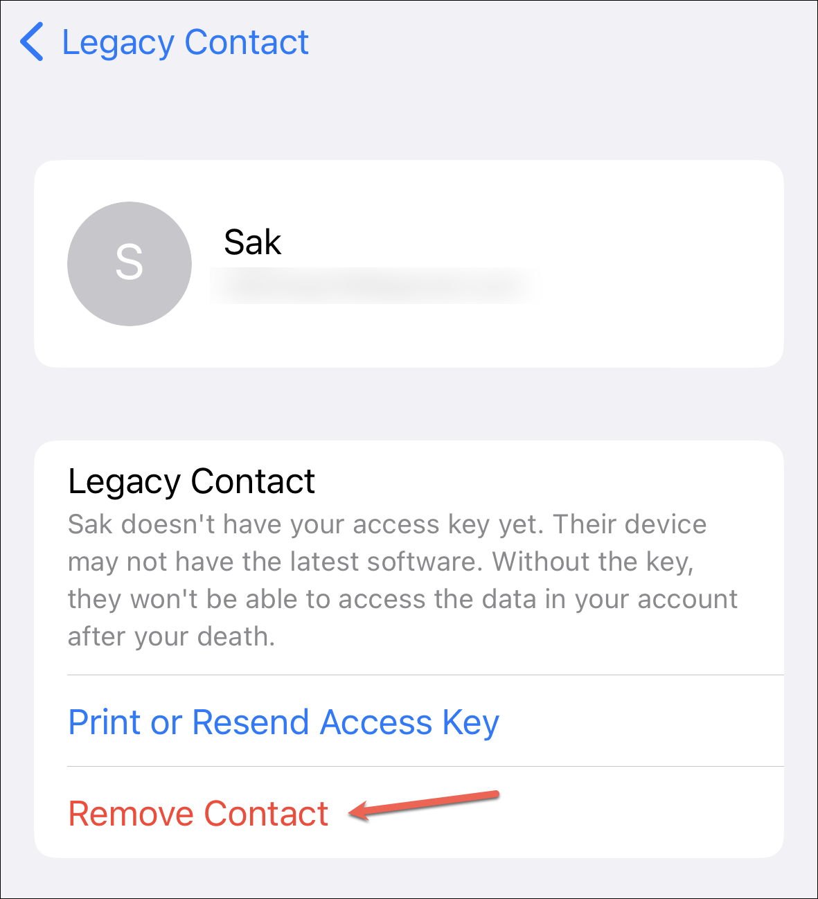 Removing a Legacy Contact
