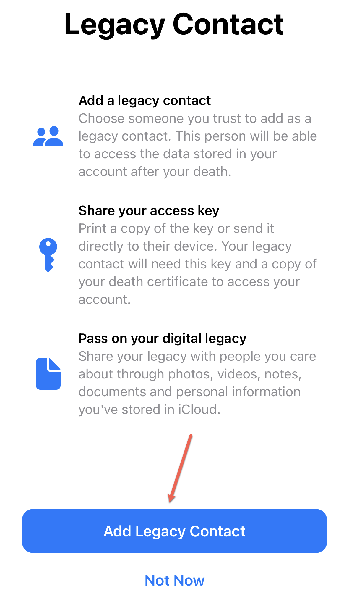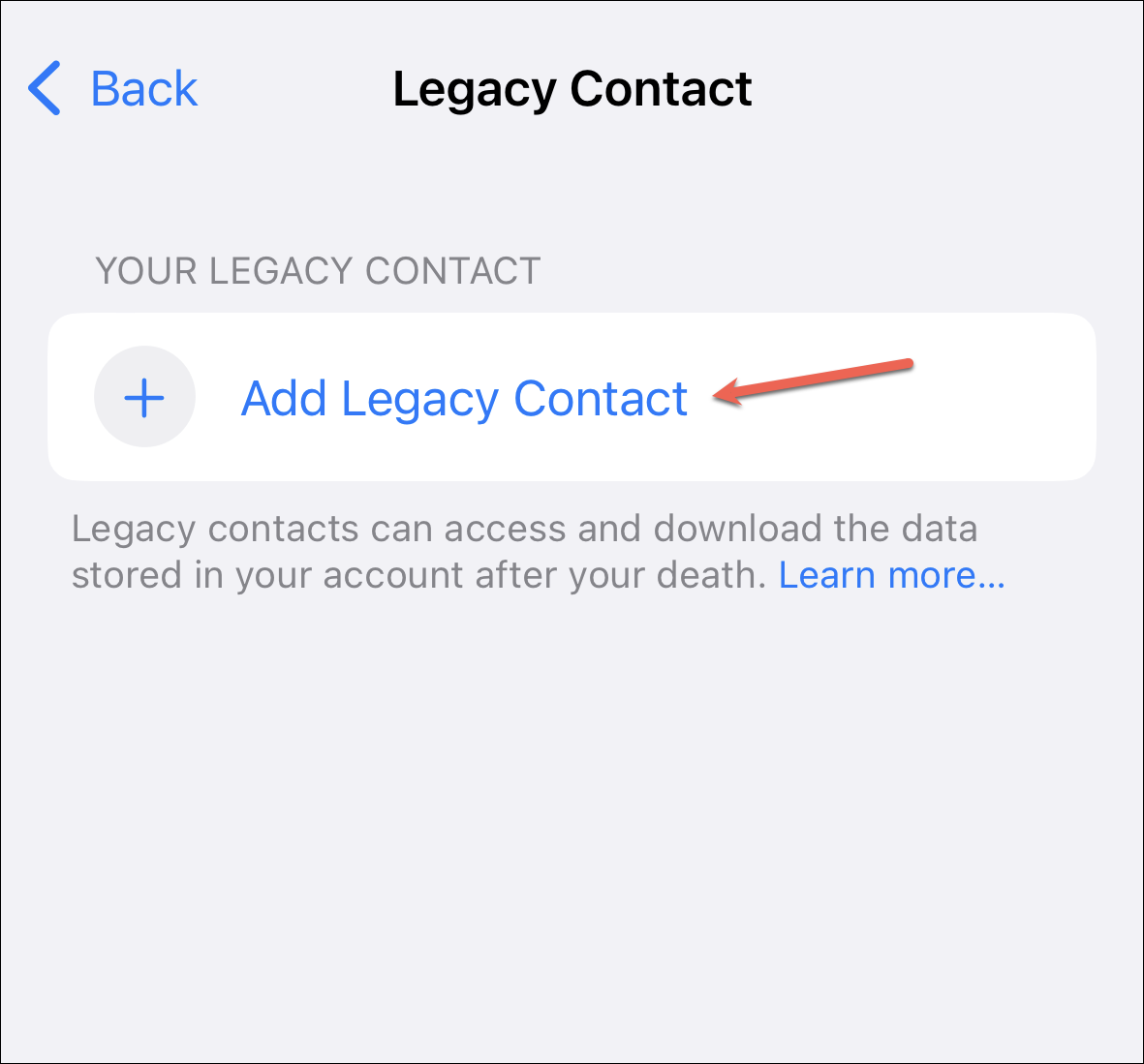 Tap ‘Add Legacy Contact’.