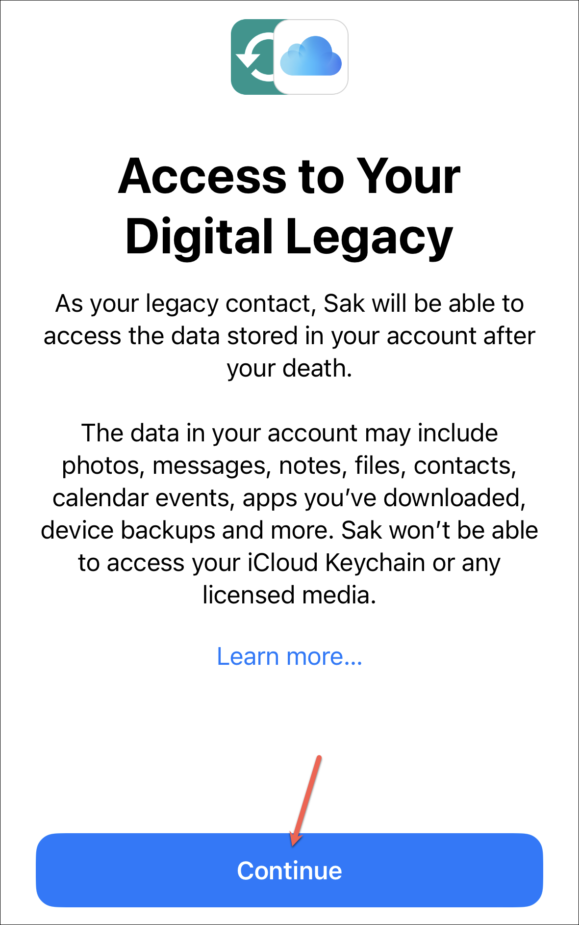 There are distinctions in what type of data legacy contacts can and cannot access after someone’s passing. The original account holder, i.e., you who wants to give a legacy contact access to your data, cannot alter the type of data the legacy contact will have access to. For example, you cannot give them access to your Notes and Mail while leaving out your iCloud Photos.