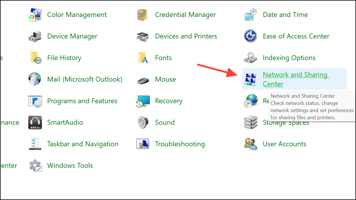 Step 2: Select "Network and Internet," then click on "Network and Sharing Center."