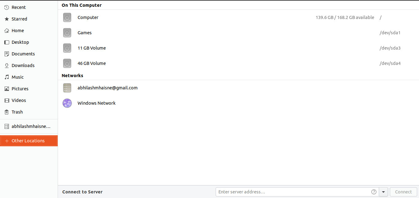 Step 2: In the Nautilus sidebar, click on "Other Locations" at the bottom.