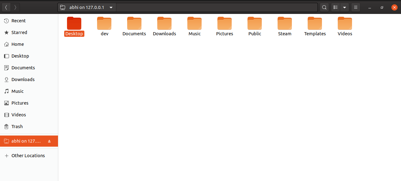 Enter your system's username and password to log in. After logging in, you should see a directory listing of your user's home directory.