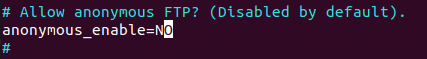 sudo vim /etc/vsftpd.confChange the line anonymous_enable=YES back to anonymous_enable=NO to disable anonymous logins.
