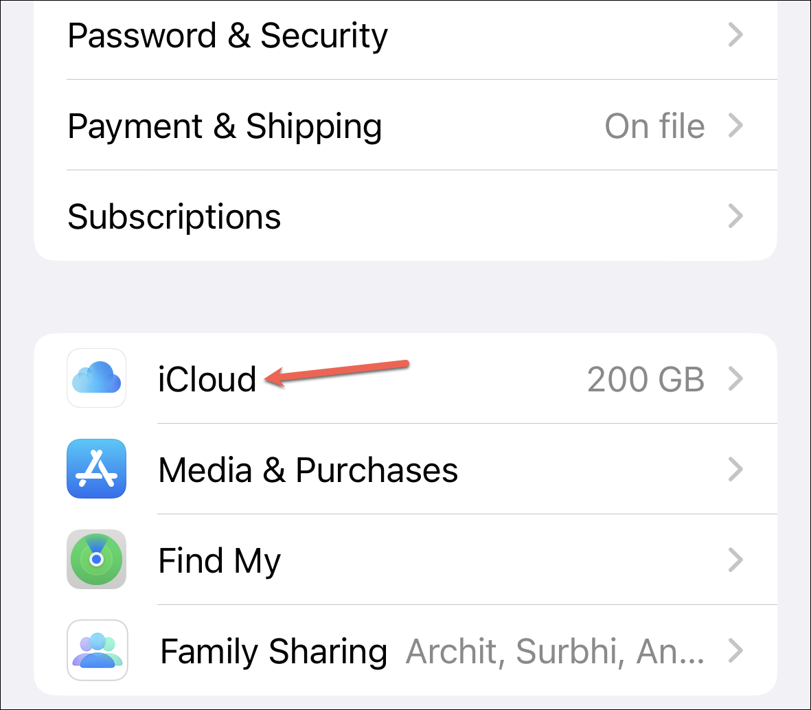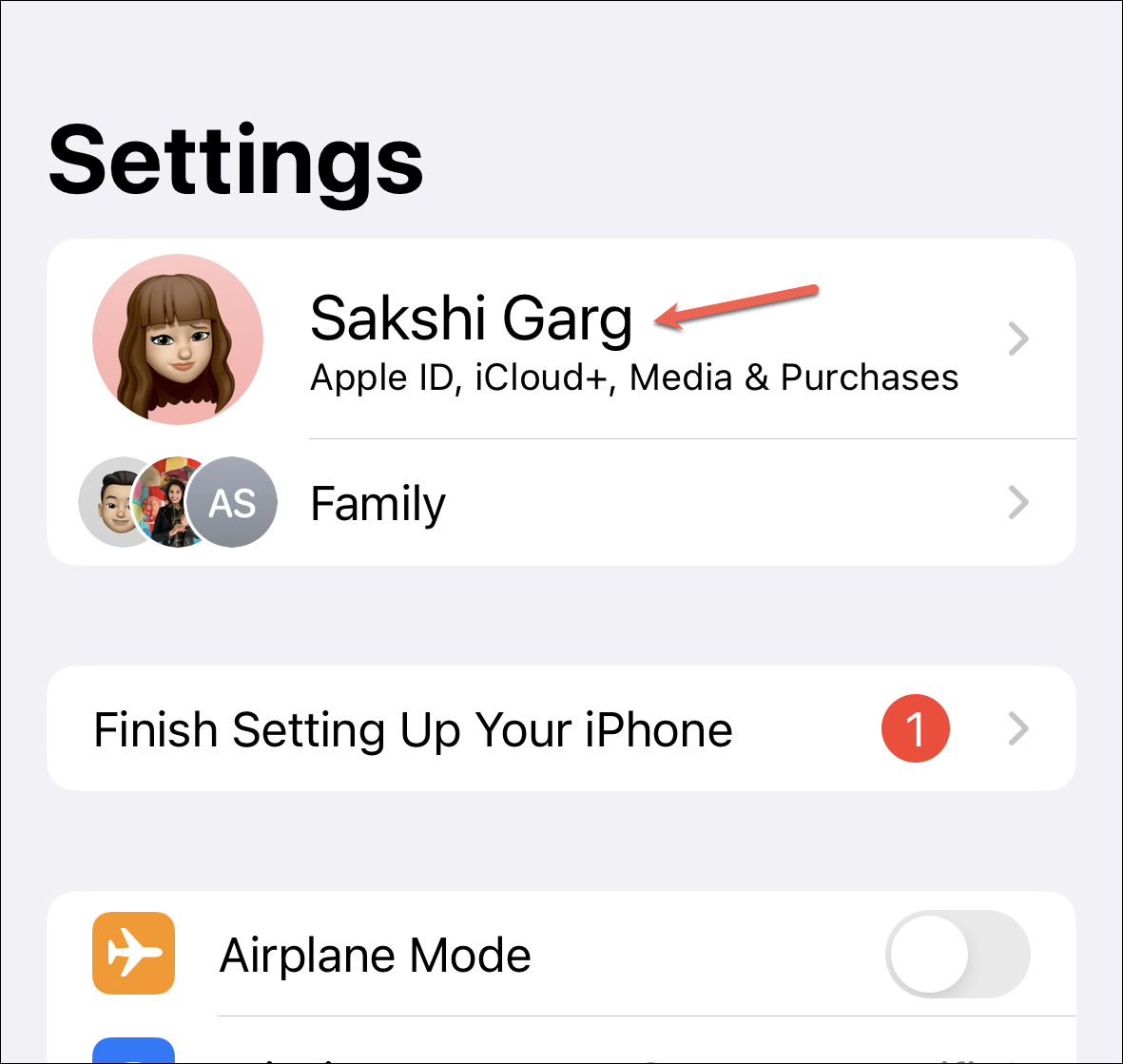 The only additional requirement for setting up Shared Library is that you must have iCloud Photos turned on. If you don’t have iCloud Photos enabled, go to the Settings app. Then, tap your name at the top.