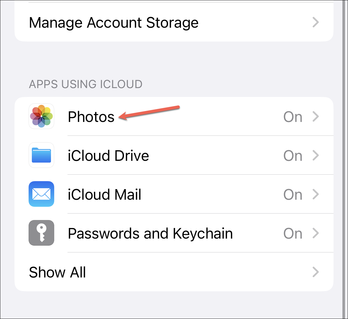 Now, tap the option for ‘Photos’.