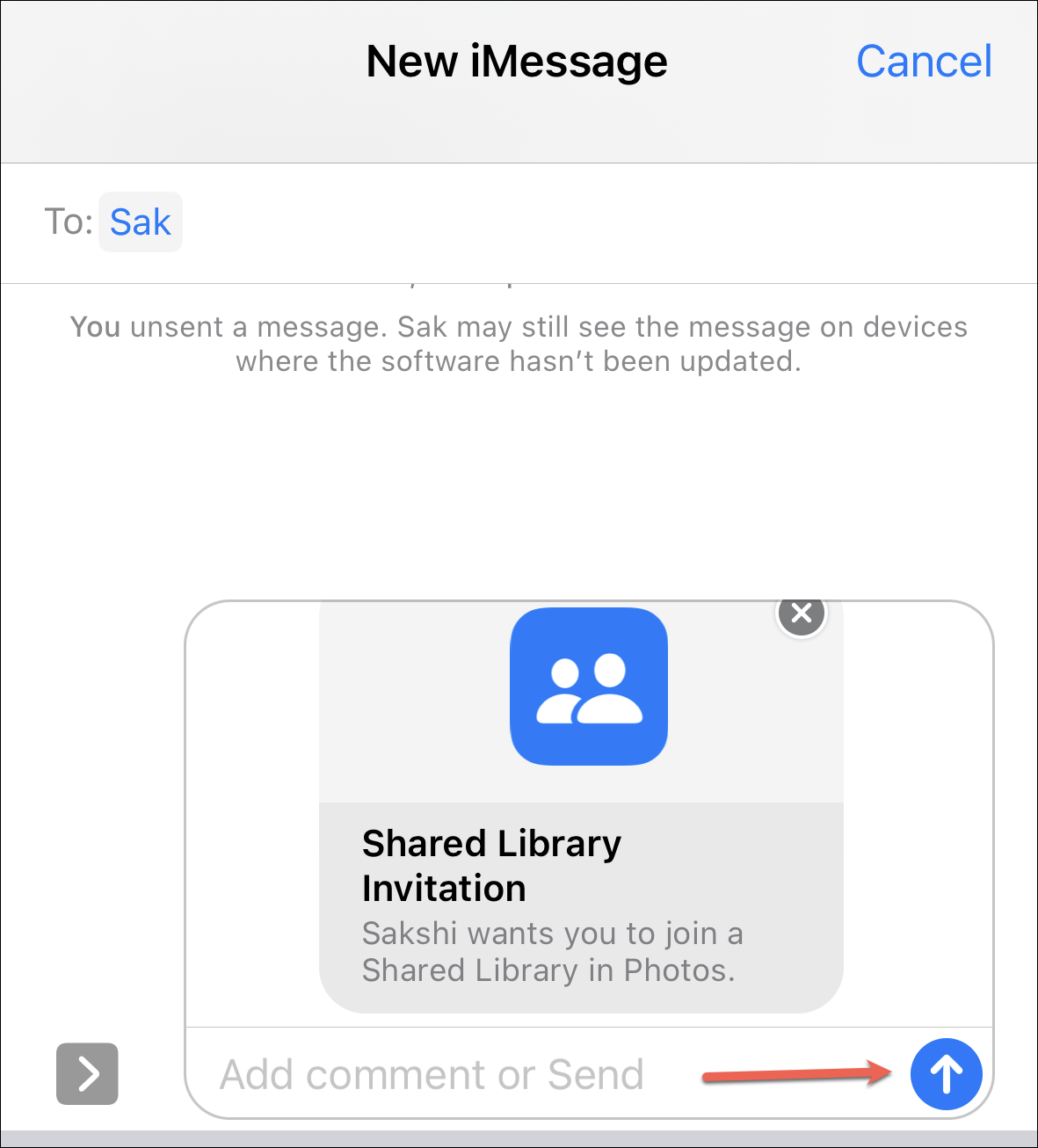 If you chose messages, the invitation will load in the message box. Tap ‘Send’ to invite the people.