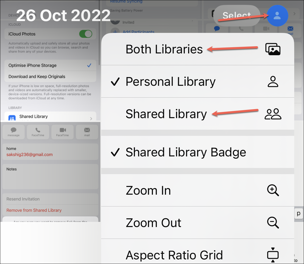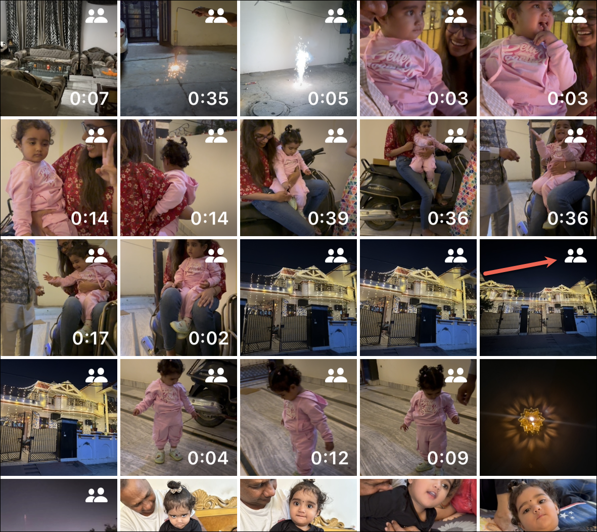 By default, when you go to the library from the Photos app, it’ll show both, your personal library as well as the shared library in one place. The photos from the Shared Library will have a Shared Library icon on the top-right corner of the thumbnail to help you easily differentiate.