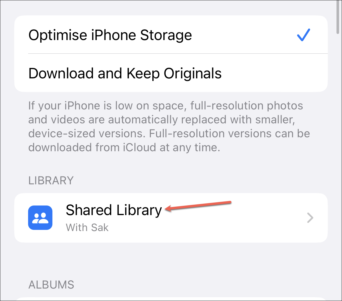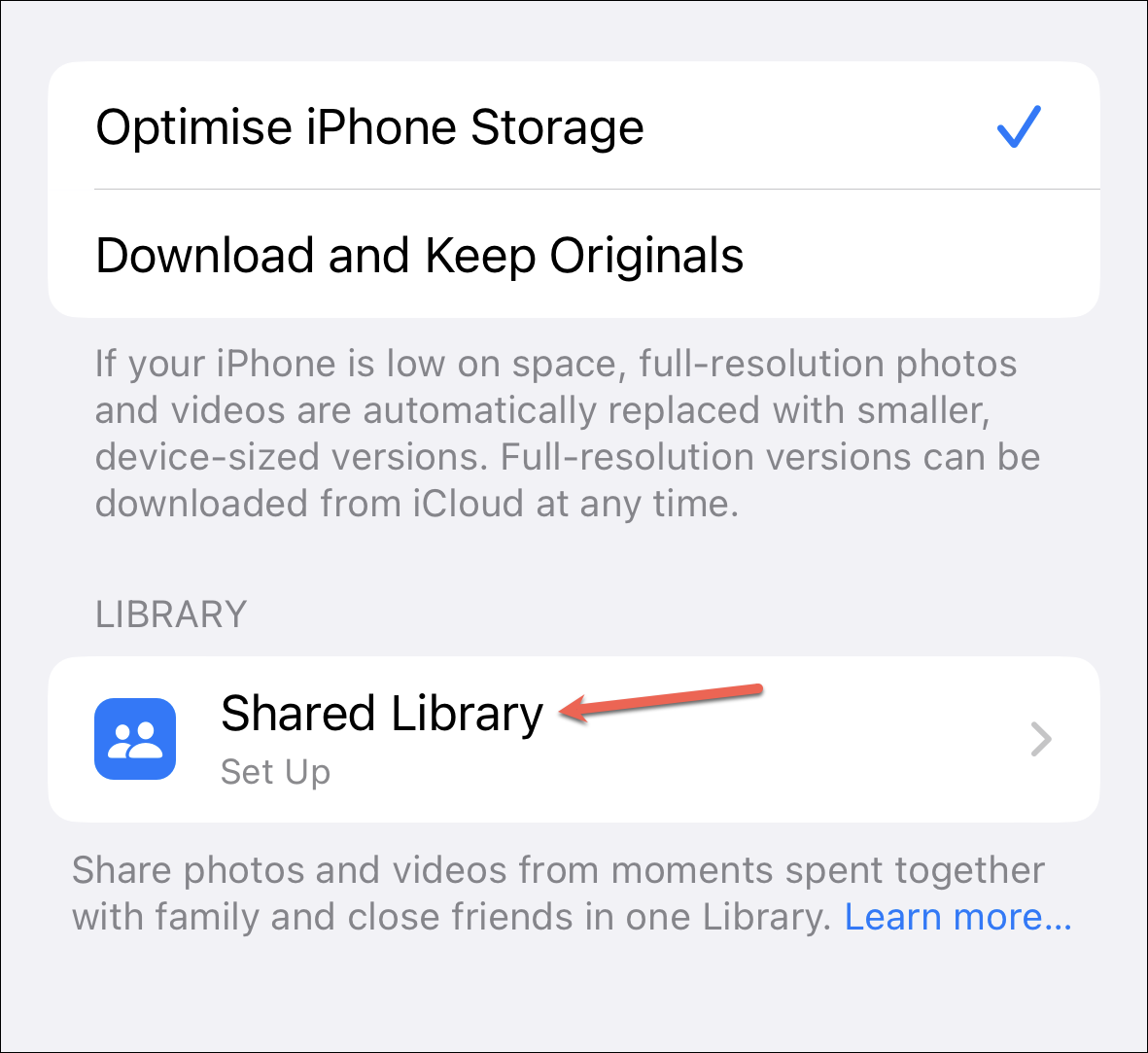 Other participants can choose to leave the Shared Library at any time. Go to ‘Photos’ from the Settings app on your iPhone.