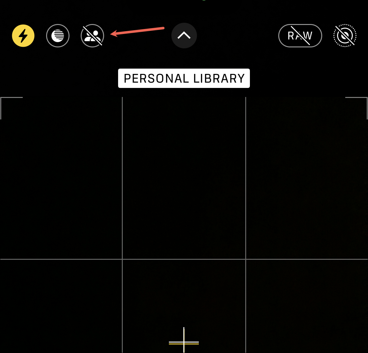 Then, tap the ‘Shared Library’ icon in the top-left so it turns yellow to share photos and videos automatically.